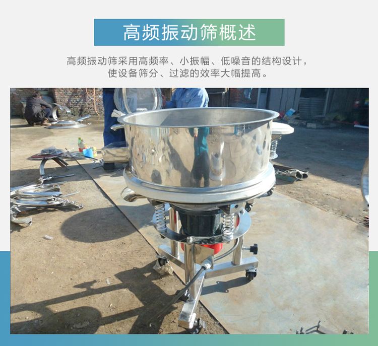 高頻篩也叫高頻振動篩,采用高頻率、小振幅、低噪音的結(jié)構(gòu)設計,使細粒物料在篩面上高速振蕩,破壞了漿液的表面張力,增加了物料與篩孔接觸的頻率,使設備篩分、過濾的效率大幅提高,廣泛應用于食品、醫(yī)藥、化工、磨料、陶瓷、礦業(yè)、顏料、冶金、地質(zhì)、國防、電子等行業(yè)的漿料、粉料、顆粒生產(chǎn)的分級、過濾。方便的活動車架在工作場所可以隨意移動,不用進行復雜的設備安裝,高低可調(diào)、操作簡單、經(jīng)久耐用。