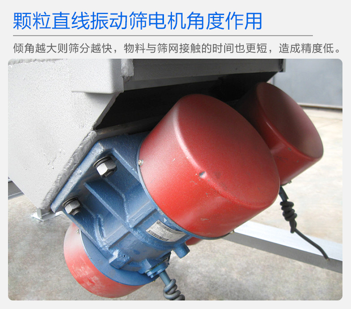 顆粒直線振動(dòng)篩振動(dòng)源主要來(lái)自振動(dòng)電機(jī),振動(dòng)電機(jī)在通電后想要產(chǎn)生震動(dòng),再利用兩端重錘,來(lái)產(chǎn)生不同的篩分效果。