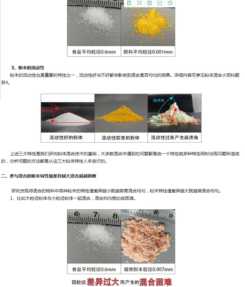 有些粉體因?yàn)槌睗瘛⒄承赃^(guò)大、含有不易分散的假顆粒、含有纖維束狀物質(zhì)等等均會(huì)造成混合困難。
