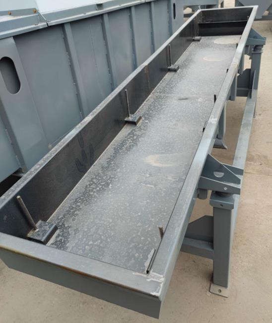 振動(dòng)輸送機(jī)一般由振源—振動(dòng)電機(jī)或激振器、承載體、減振支承、承載基礎(chǔ)及相關(guān)配套附件等組成。根據(jù)現(xiàn)場(chǎng)使用環(huán)境及輸送物料特性要求,輸送機(jī)承載體可采用不同材料分別加工成U形槽和管狀等結(jié)構(gòu)形式,并可按有無密封要求制作成敞開型或封閉型,以滿足不同工藝流程;由于設(shè)備承載體是金屬制件及潤(rùn)滑點(diǎn)遠(yuǎn)離物料,因此,該機(jī)不僅可以輸送各種常溫、普通物料,而且可以輸送很多高溫、有毒等非常規(guī)物料;如對(duì)承載體施行特殊加工,則在輸送過程中可實(shí)現(xiàn)物料的篩選、干燥、加溫、冷卻等工藝要求。